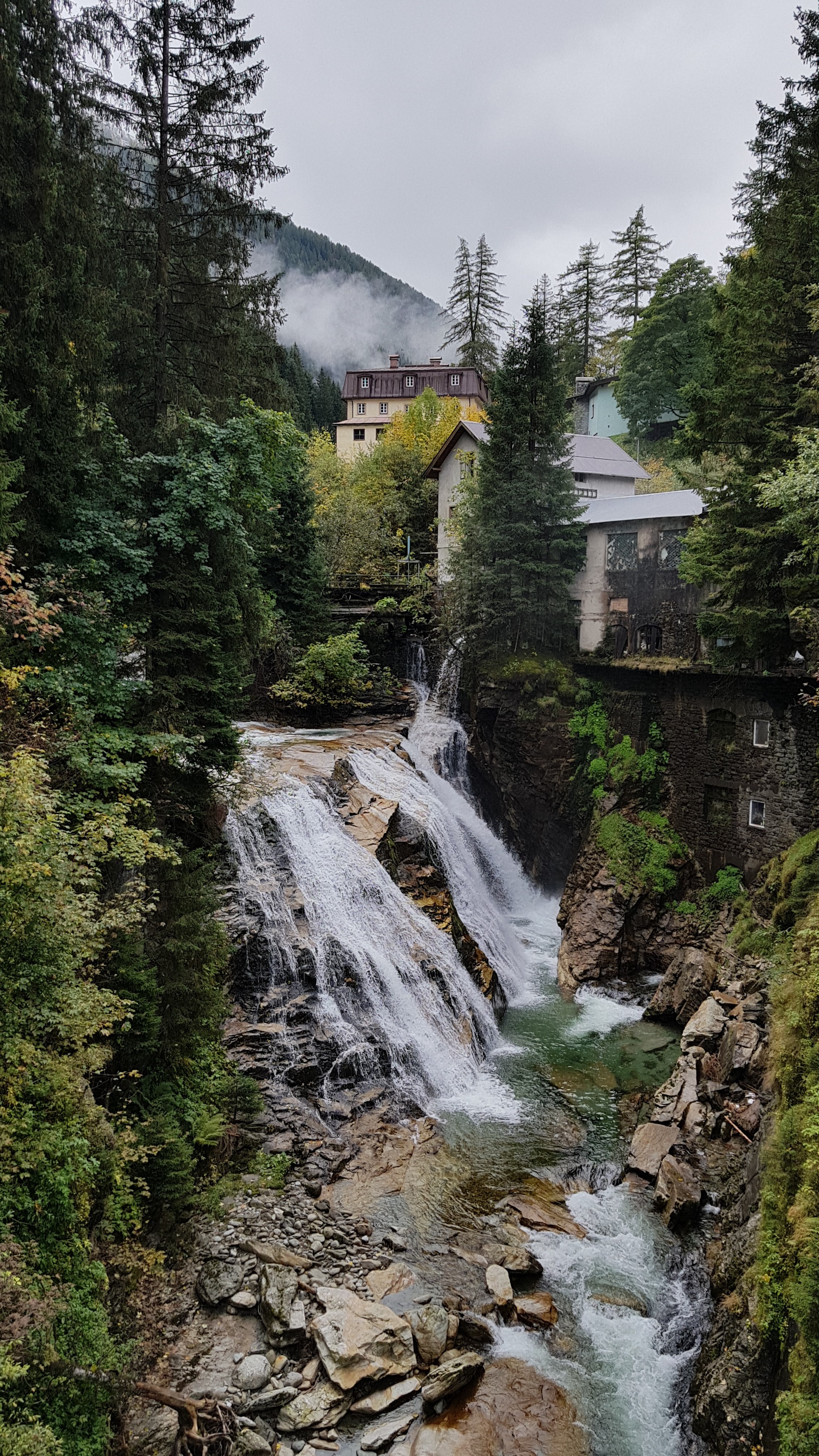 폭포 사이로 보이는 마을이 너무 멋집니다.